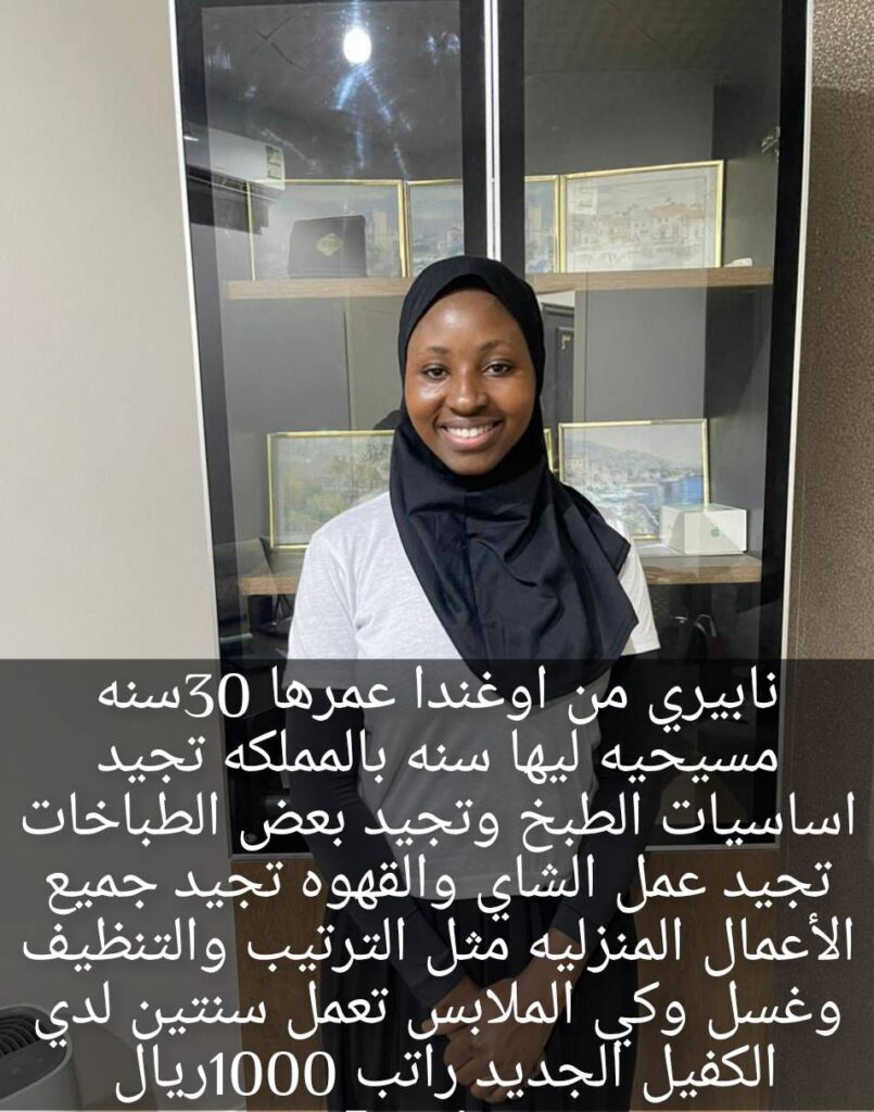 تجيد التنظيف والغسيل, تجيد الطبخ, تجيد عمل الشاي والقهوة, تجيد كل اعمال التنظيف, تجيد كي الملابس, ذات مهارة عالية بالطبخ
